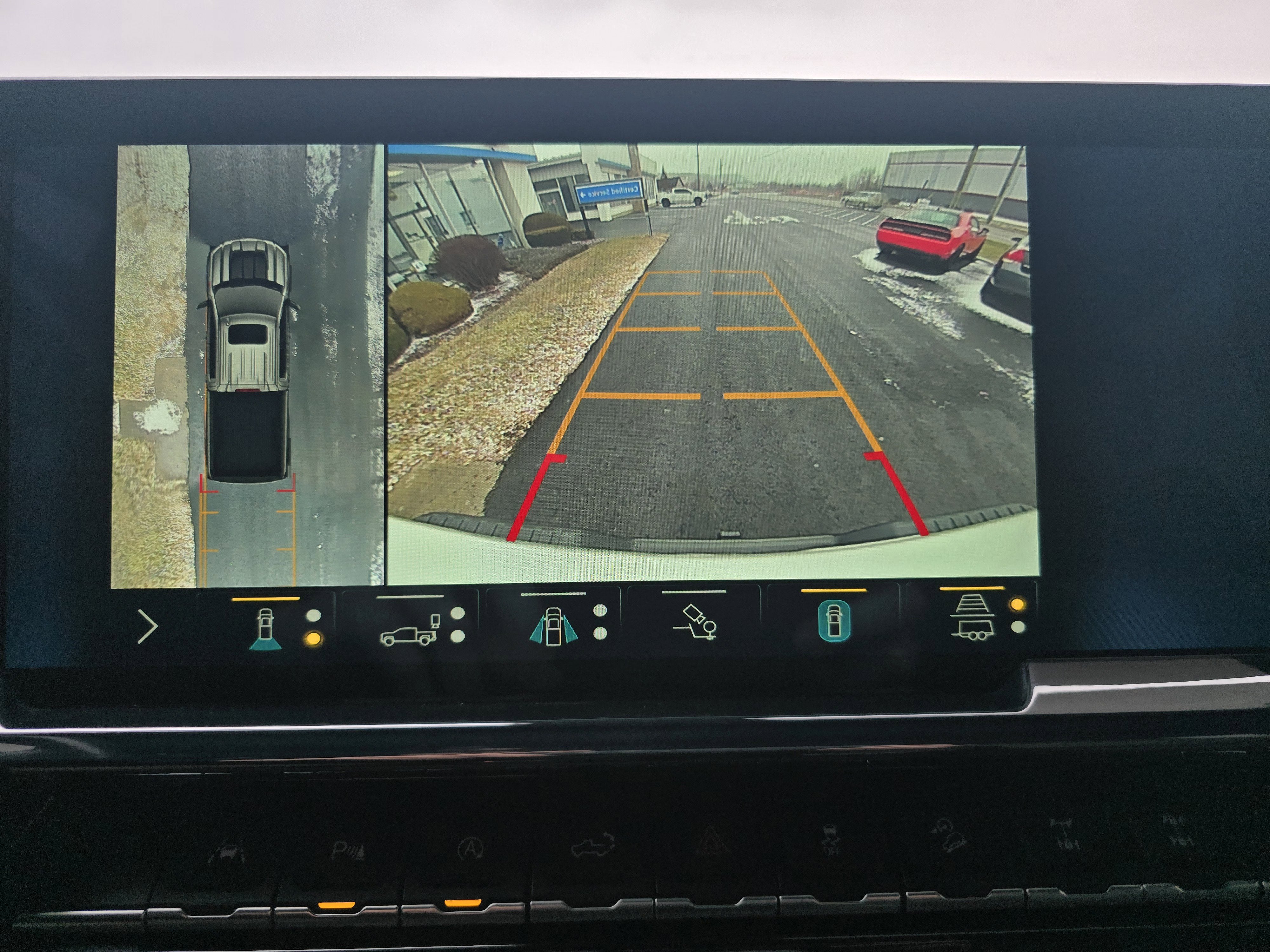 - Camera in the Center High Mount Stop Lamp (CHMSL) provides an elevated view of the truck bed from the back of the cab1