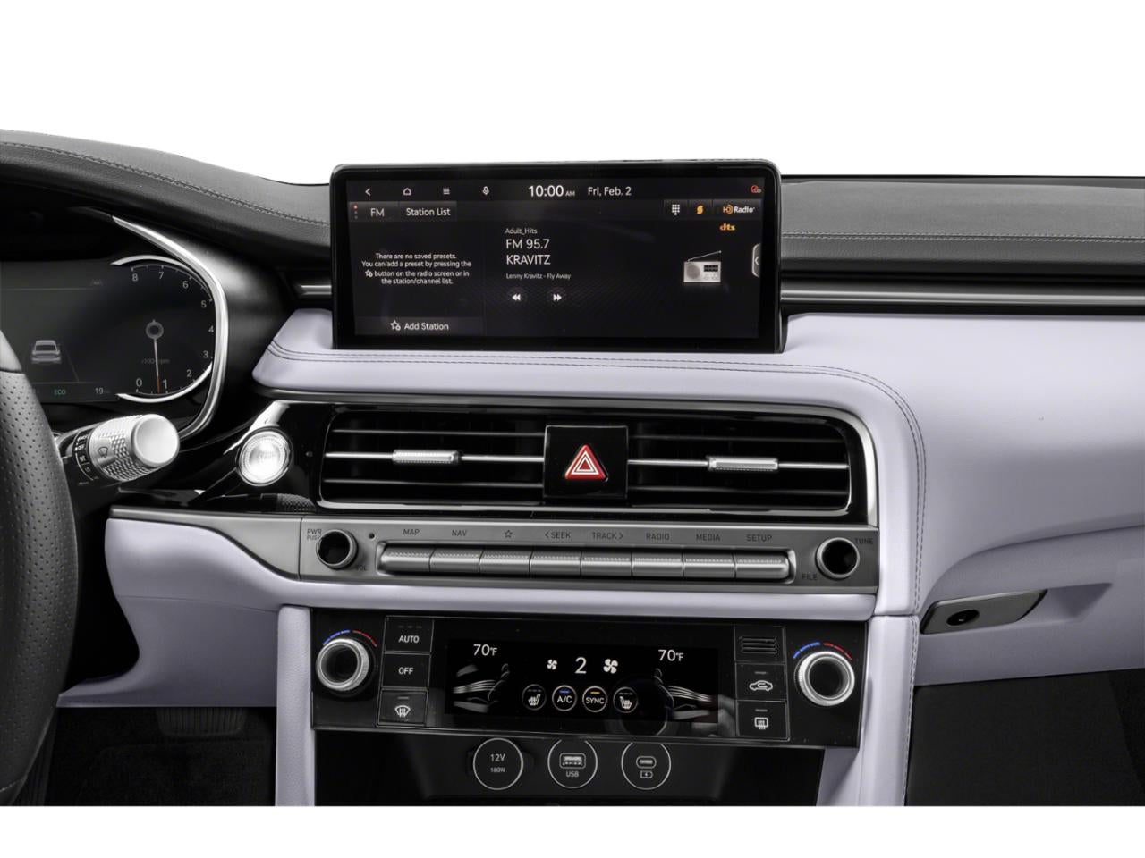 - Radio: AM/FM/SiriusXM/HD Audio System -inc: 6 speakers, 5th generation navigation system w/10.25" touchscreen, dynamic voice recognition, connected routing, over the air updates, Android Auto and Apple CarPlay, SiriusXM Radio w/90-day trial subscription (not available in Alaska or Hawaii), Genesis connected services, Bluetooth® hands-free phone and audio streaming system